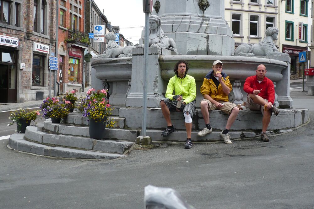 La première vraie étape commence par un petit déj sur le rond-point du village.