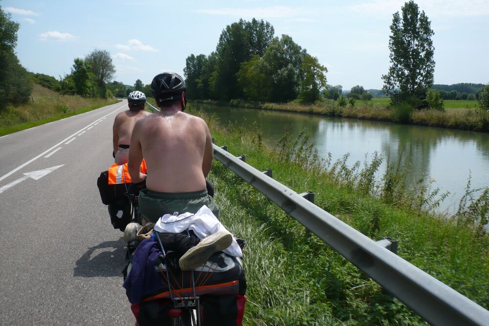 La route est un peu plus fréquentée que ce qu'on aimerait, on zieute l'autre rive mais il n'y a pas de chemin de halage.